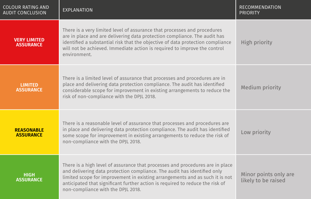 The aims of our audit process are to assess a controller/processor’s policies and procedures and the level of compliance with the DPJL 2018, to highlight any areas of potential risk, and set a timeframe for any necessary remedial work.
