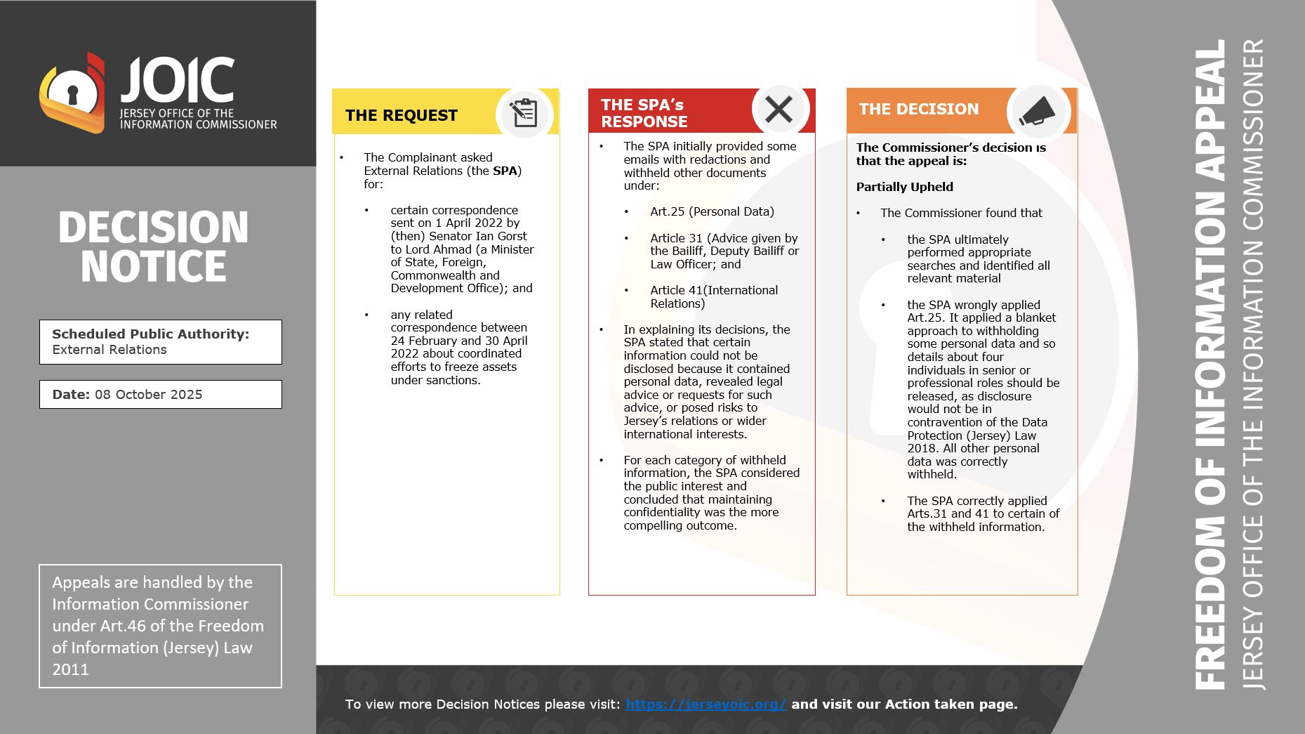 External Relations 8 October 2025 Click here to view a copy of the summary Decision Notice Click here to view a copy of the Decision Notice