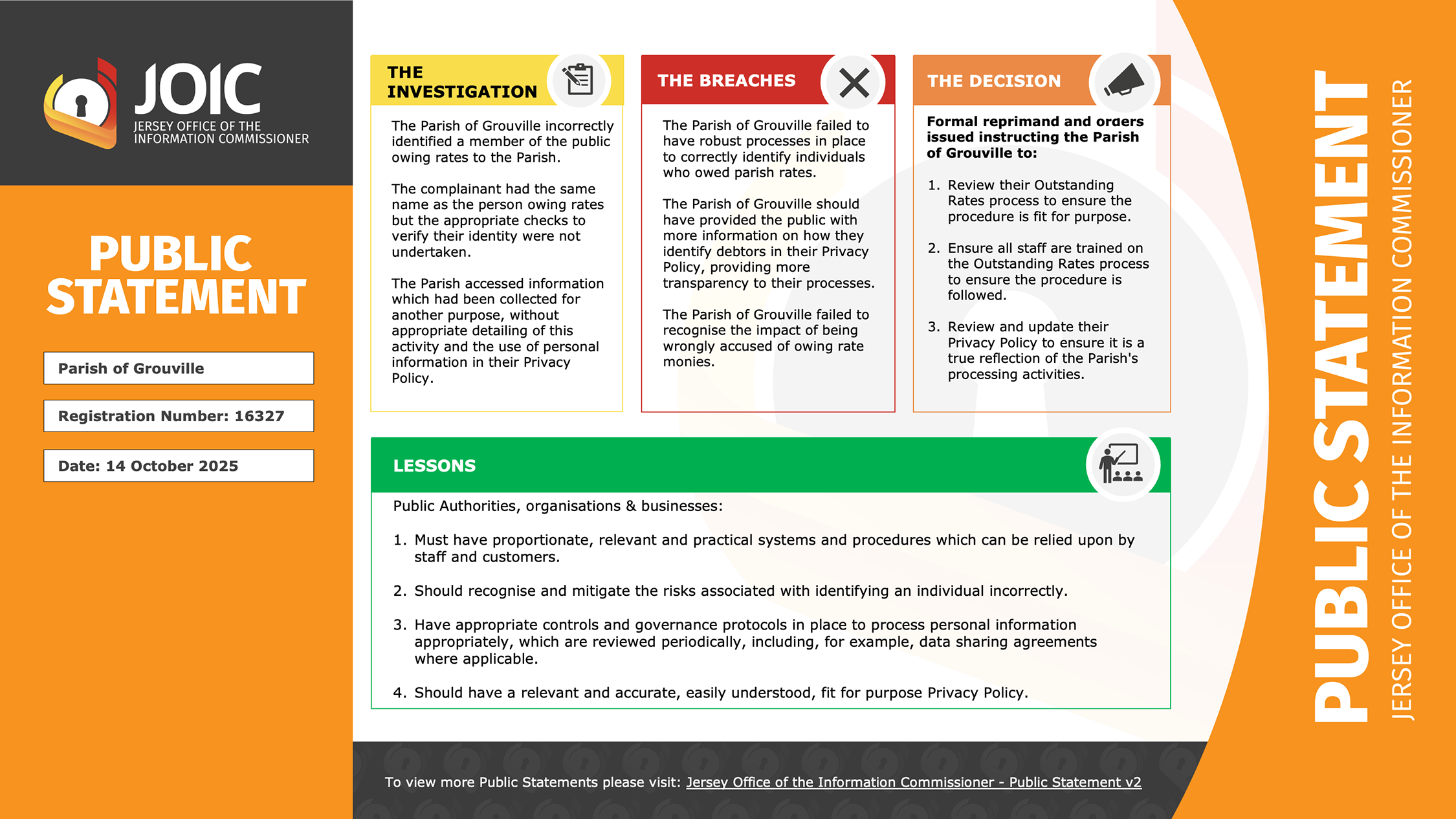 Parish of Grouville 14 October 2025 Click here to read the lessons learned Click here to view a copy of the Public Statement